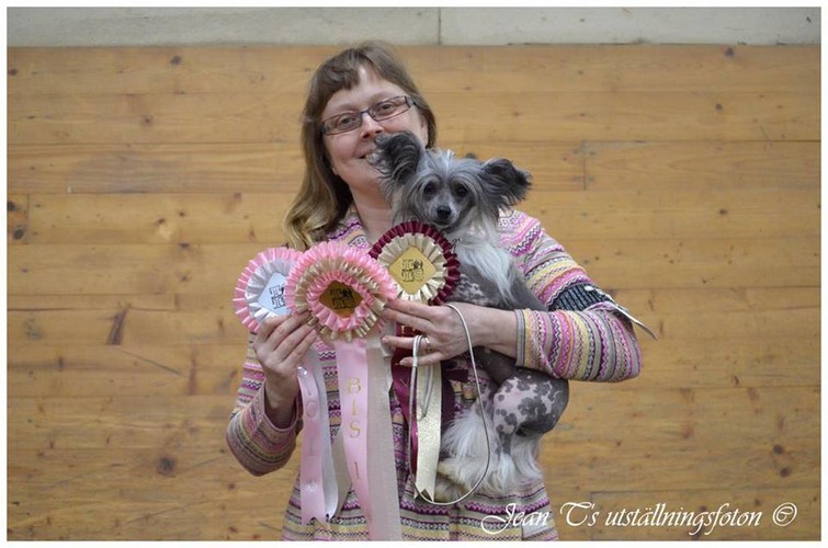 Fantastiska Proud Pony Mustang "Rambo", ägare: Sandra Tatnell, blir BIR och vinner sitt andra engelska CC, bara 10 månader gammal i Southern Countries, England 20170602. Han skriver därmed rashistoria i England, ingen annan Chinese Crested har haft så stora framgångar som han i så ung ålder.