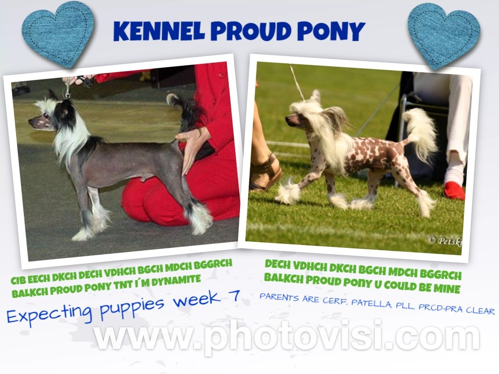 Vi har fått en ny kull med underbara valpar. "Elise", EECh DKCh DKKLBJCh ROCh ROGrCh Proud Pony Evolution Revolution parad med " Hilfons" C.I.B. EECh VDHCh DECh DKCh BGCh MDCh BGGrCh BALKCh Proud Pony TNT I´m Dynamite har valpat 20170421. I kullen finns 5 fina valpar, 1 powder puff hane, 3 nakna hanar och 1 naken tik. Foton på valparna kommer snart!